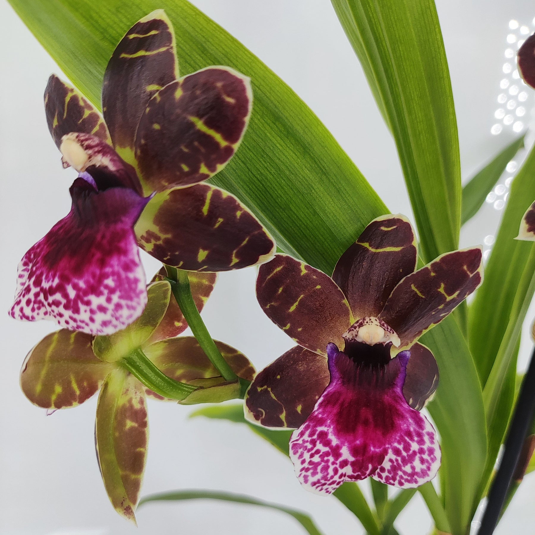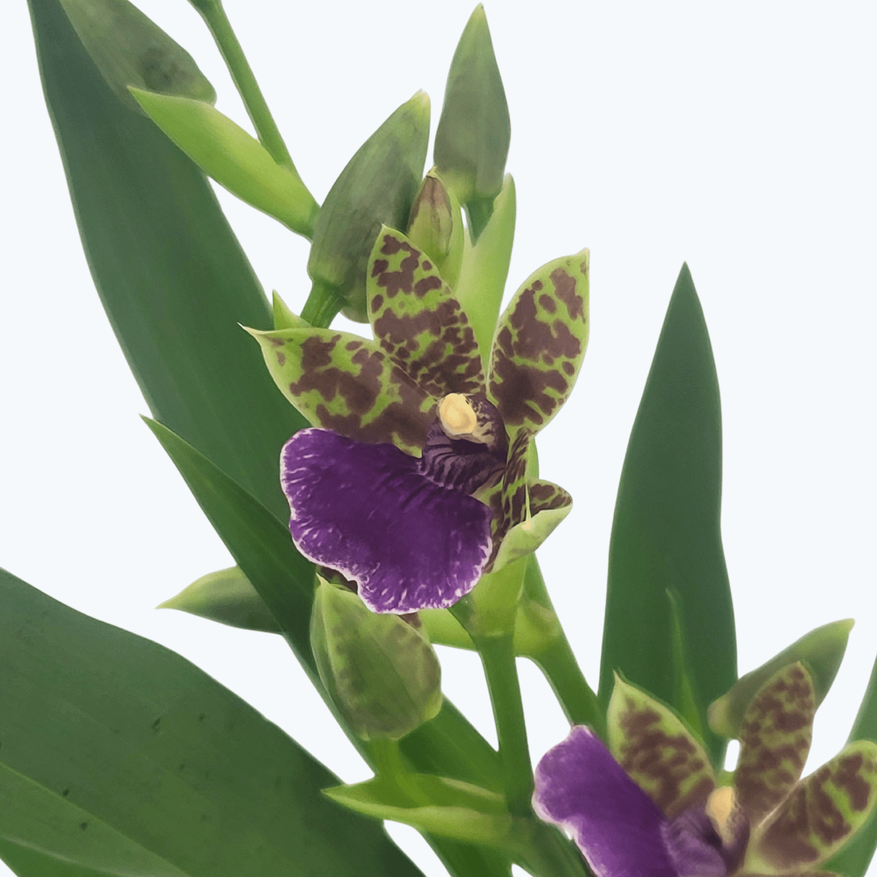 Zygopetalum Hybride ist eine stark wüchsige Orchidee und muss eventuell bald von dir in einen größeren Topf umgetopft werden. Sie blüht zuverlässig mit beinahe jedem neuen Austrieb.